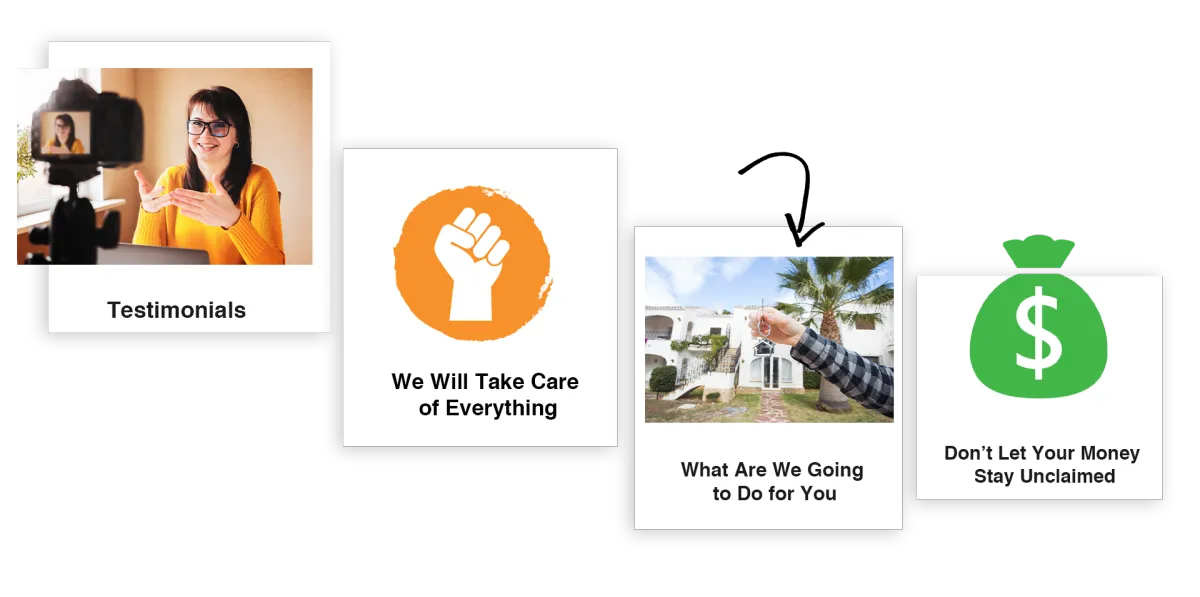 We will find where your money is, we will submit the claim, prepare all the paperwork, hire attorneys for you, work on all the legal documents with all the government entities, make contacts with them, and keep you updated throughout the process.